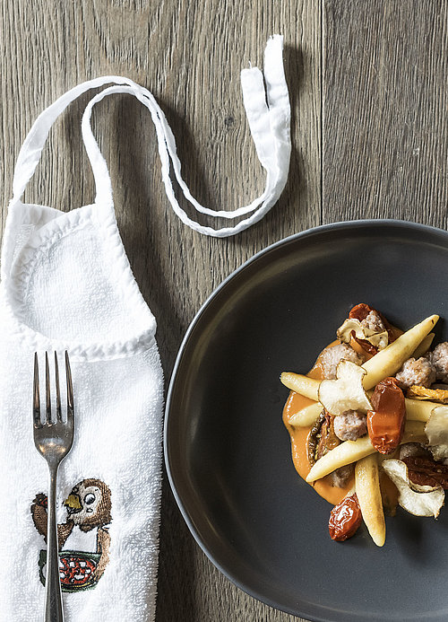 Wasser raus! Jetzt wird’s matschig! Drückt mit den Händen das Wasser aus dem Gemüse – Kinderhände helfen super!