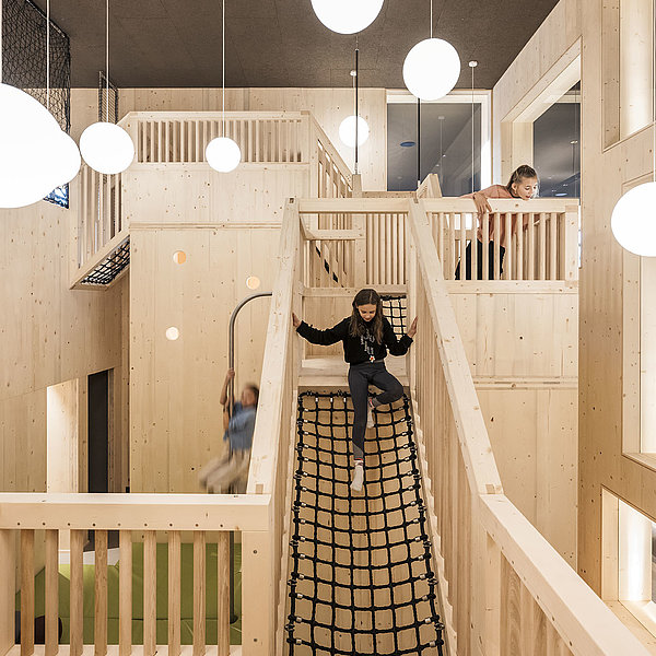 Anyone who was in a mountain pasture as a child knows: It’s not just a tractor that’s in Granddad’s barn. With a bit of luck, a mountain of dried grass awaits brave “hay jumpers”. Just like in our play barn... Get your friends to come along and jump around!
