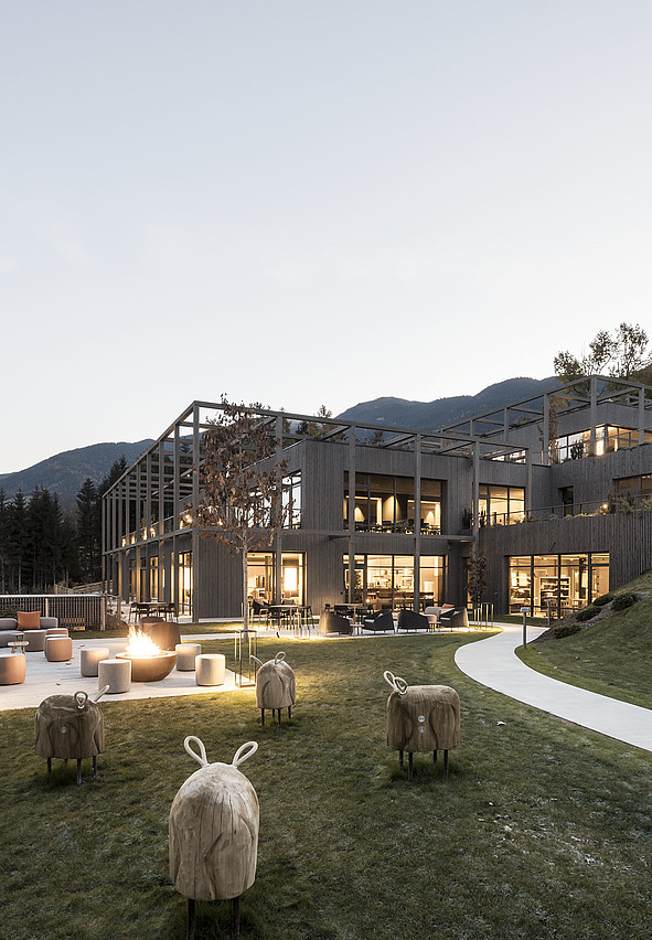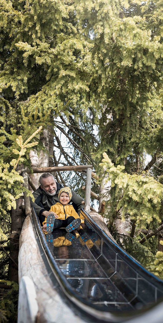 Direttamente sopra le radici della foresta, è possibile esplorare la grande area esterna dedicata ai giochi, il nostro privato parco avventura, visitare gli animali della nostra piccola fattoria o scivolare sul laghetto delle anatre su una zattera. Per i più avventurosi c'è anche una funivia per bambini e un ricco programma di attività ci tiene in movimento tutto il giorno.