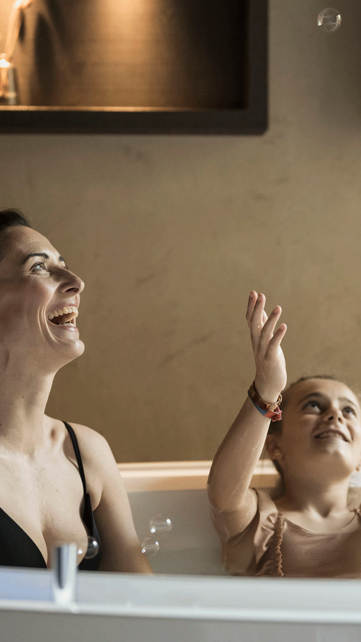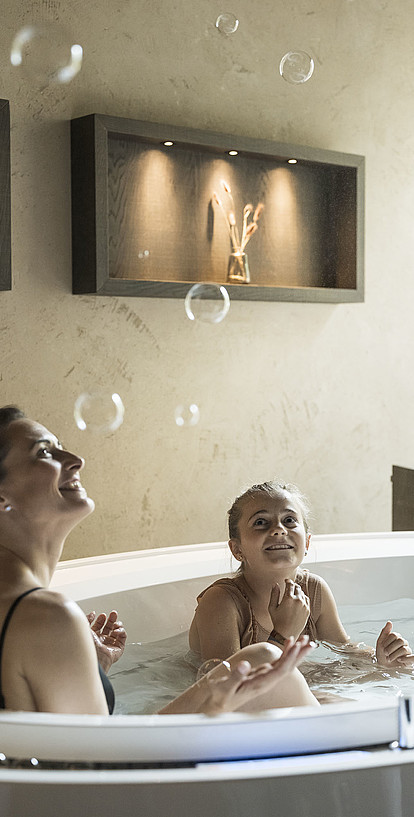 Quando il relax diventa divertente, siamo nell’AKI Spa dedicata a tutta la famiglia. Nell'area benessere per famiglie, piccoli e grandi si tuffano in piscina, gareggiano sullo scivolo di velocità o si incontrano nel bagno turco per la loro prima esperienza di benessere in sauna.
